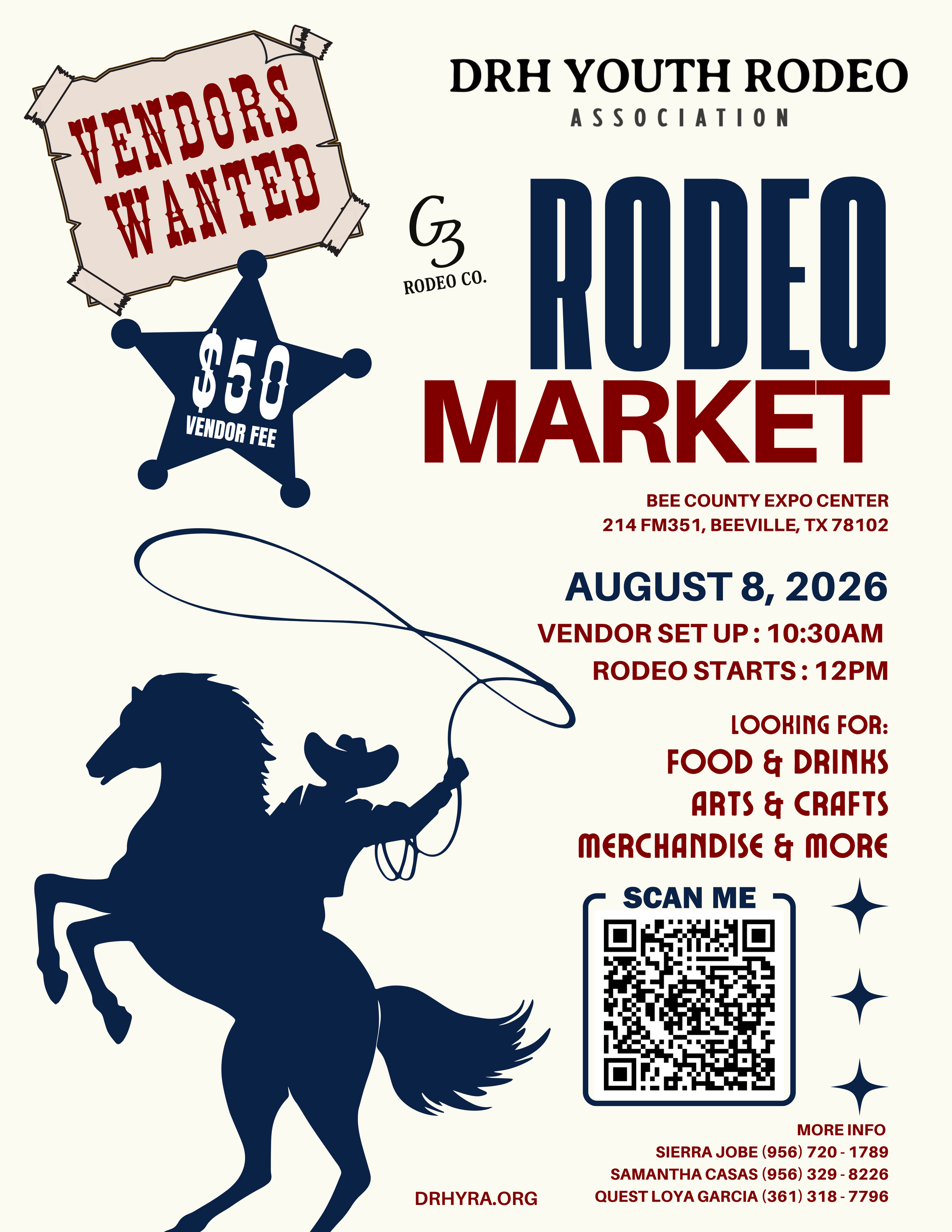Join us as a vendor at our upcoming Rodeos in Edinburg, Kingsville and Sinton, TX. This exciting event draws crowds eager for great food, unique merchandise, and more! Don’t miss the chance to showcase your products to a lively audience. Secure your spot today!